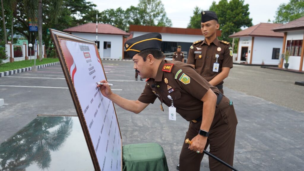 Kejari Bone Bolango – Senin, 29 Januari 2024 telah dilaksanakan Apel Penandatanganan Komitmen Bersama dan Pakta Integritas Pembangunan Zona Integritas menuju Wilayah Bebas Korupsi (WBK) dan Wilayah Birokrasi Bebas dan Melayani (WBBM) yang dipimpin oleh Kepala Kejaksaan Negeri Bone Bolango, Raden Sudaryono, S.H., M.H. Penandatangan ini diikuti oleh seluruh pegawai Kejari Bone Bolango. (Gabby)