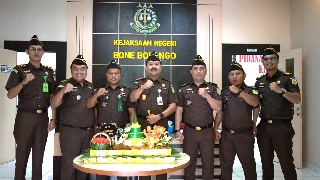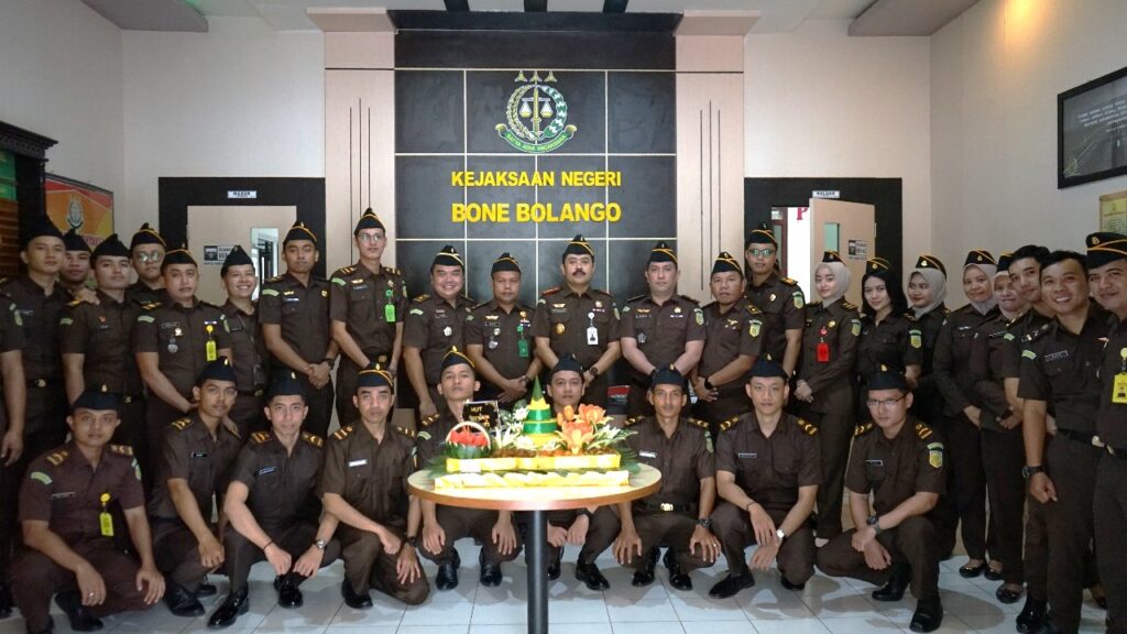 Kejari Bone Bolango – Senin, 06 Mei 2024 telah dilaksanakan Apel Peringatan Hari Ulang Tahun Persatuan Jaksa Indonesia yang ke-73 Tahun di Halaman Kantor Kejaksaan Negeri Bone Bolango. Upacara ini di pimpin langsung oleh Bapak Kajari Bone Bolango, Raden Sudaryono, S.H., M.H. Apel di mulai pada pukul 08.00 WITA dan diikuti oleh seluruh pegawai Kejaksaan Negeri Bone Bolango. Setelah kegiatan Apel dilanjutkan dengan acara syukuran potong tumpeng dan makan bersama. (Gabby)